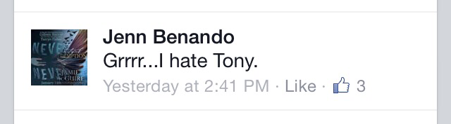 OK. This book. I have no idea what I felt about this book. What I do know is that I HATE TONY. I do. Wholeheartedly despise this man. I know my friends told that this a normal reaction and I should embrace it, but how can I think of hugs, when all I want to do is murder him??